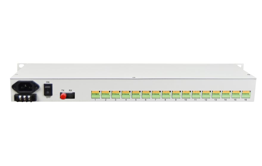 16RS232/485/422 Fiber Modem provides 16Channel RS232/485/422 transmission on fiber. The product breaks through contradictions between traditional serial interface communication distance and communication rate besides it also can solve electromagnetic interference ground ring interference and lightning damage. The device greatly improves reliability security and confidentiality of data communication. It is widely used for various industrial control process control and traffic control occasions especially for Bank and Power and other sectors and systems which have special requirements of electromagnetic interference environment. RS232/RS485/RS422 channel can transmit adaptable serial data asynchronously 0Kbps-115200Kbps baud rate.