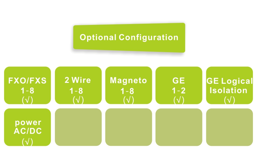 This series of products is developed based on FPGA. This product provides 8*Voice; 2*Gigabit Ethernet interface (Wire Speed 1000M), can support VLAN division.