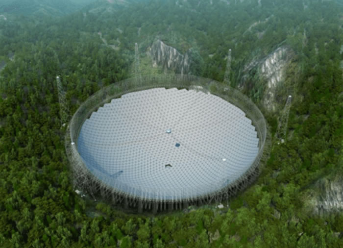 與一般的鍋式衛(wèi)星天線工作原理類似,F(xiàn)A ST由反射信號(hào)的拋物面和接收信號(hào)的饋源兩大部分組成。利用拋物面(俗稱“鍋”)的反射聚焦,把信號(hào)聚攏到一個(gè)點(diǎn)上。這里的拋物面,從形狀上來看就是一口巨大的“鍋”。只不過它所盛裝的,是“天外來客”們發(fā)出的信號(hào)。