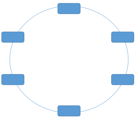 環型拓撲結構:將信息傳輸線路構成個封閉的環型, 各結點通過中繼節點連入網內,各中繼節點間首尾相接,信息單向沿環路連點傳送。各節點通過通信線路組成閉合的回路,環中數據只能單向傳輸。環型拓撲結構圖如下: