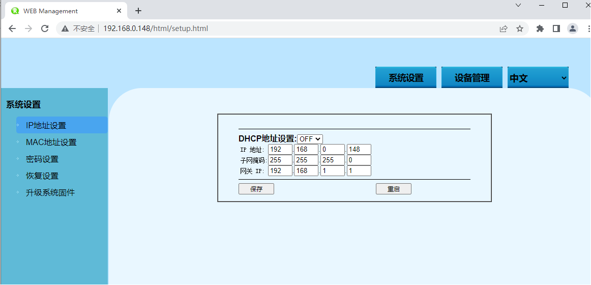 | 升級固件 | 再次使用二進制文件升級系統 |