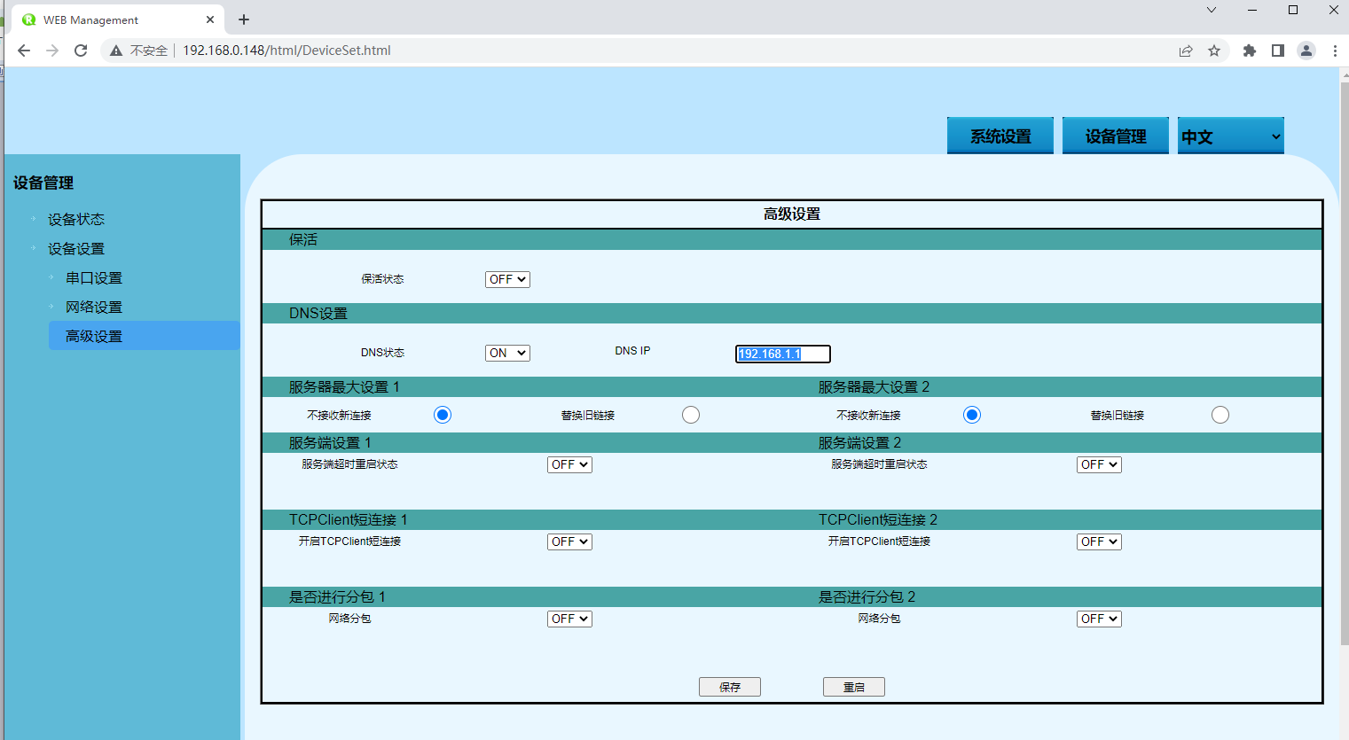 | 網關 | 填寫設備網卡1的網關地址信息,默認為192.168.1.1。 |