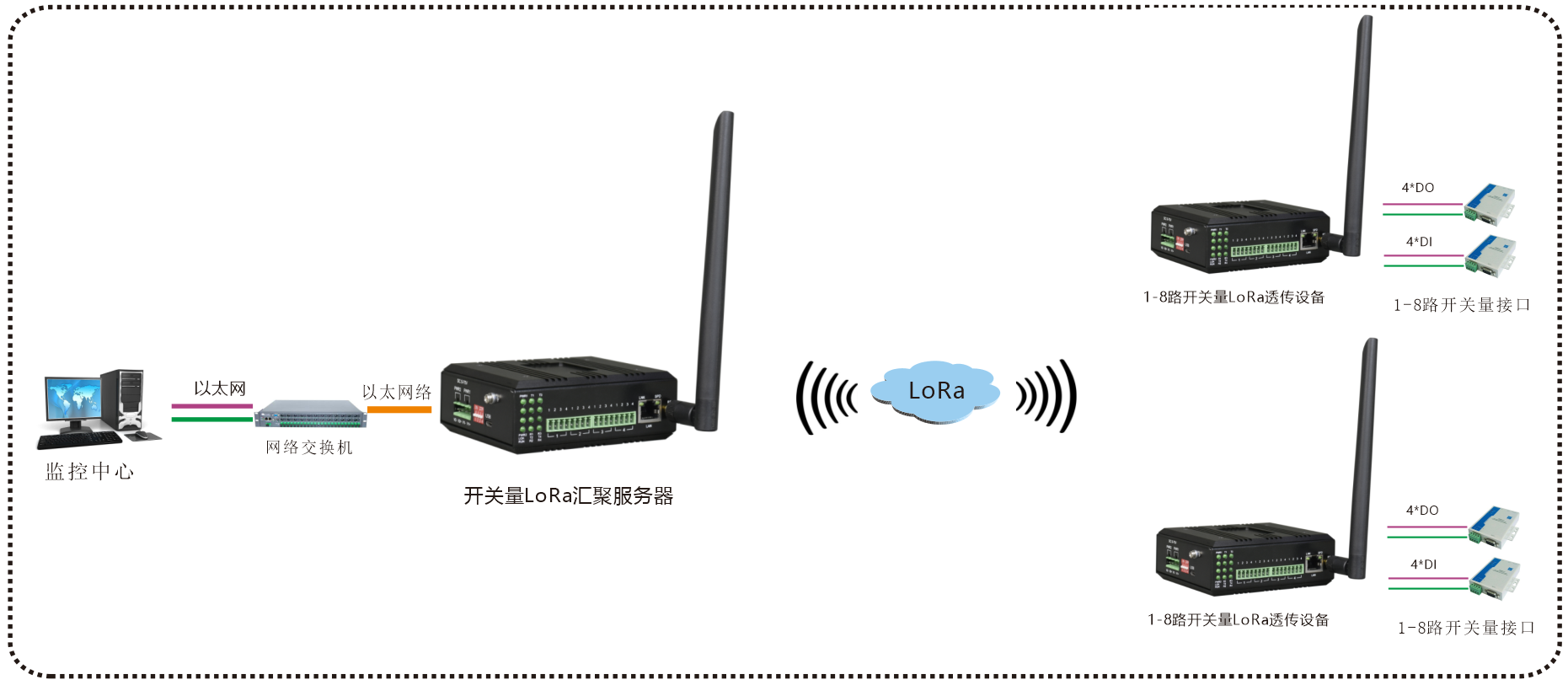 | 業(yè)務(wù)端口描述 | 1-8路開關(guān)量接口;1路百兆以太網(wǎng)電口,1路LoRa接口 |