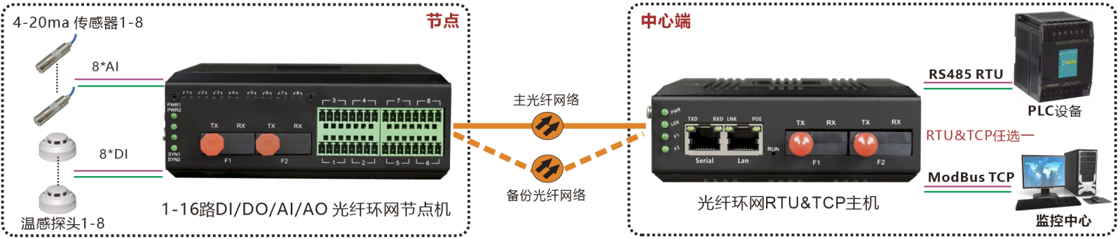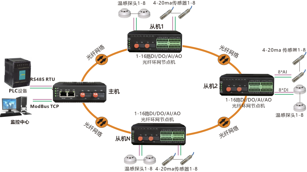 描述:工業(yè)級(jí)環(huán)網(wǎng)型光端機(jī)每個(gè)節(jié)點(diǎn)提供最多16路DI/DO/AI/AO開關(guān)量模擬量在光纖中傳輸,支持多種光纖網(wǎng)絡(luò)拓?fù)浣Y(jié)構(gòu):點(diǎn)對(duì)點(diǎn)通訊、鏈型網(wǎng)絡(luò)、星型網(wǎng)絡(luò)及冗余環(huán)網(wǎng)自愈保護(hù)等拓?fù)浣Y(jié)構(gòu)