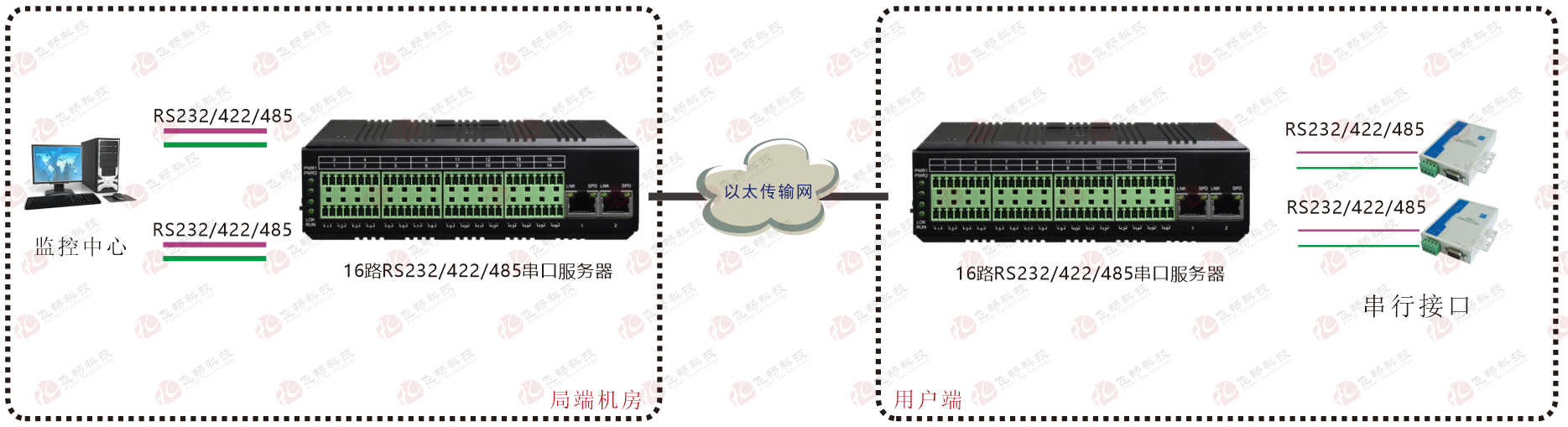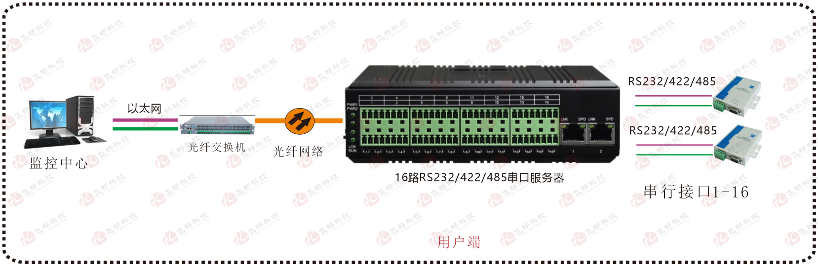 | 業務端口描述 | 16個RS232/422/485串行接口;2路百兆以太網電口 |