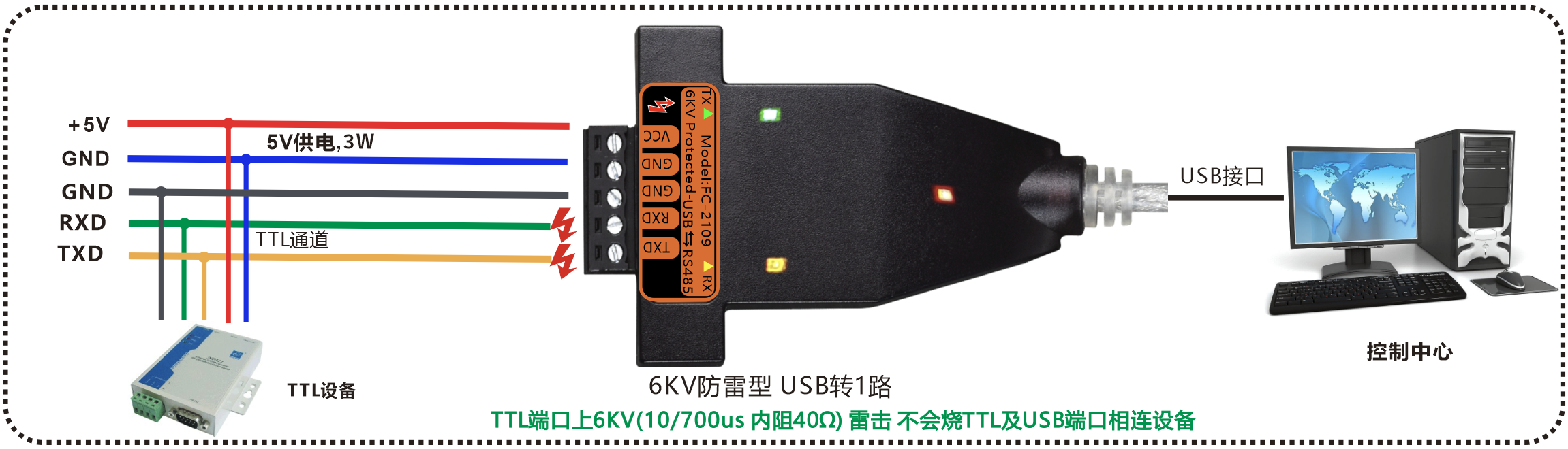 | 產品功能描述 | 防雷型USB轉1路TTL轉換器,帶USB線 |