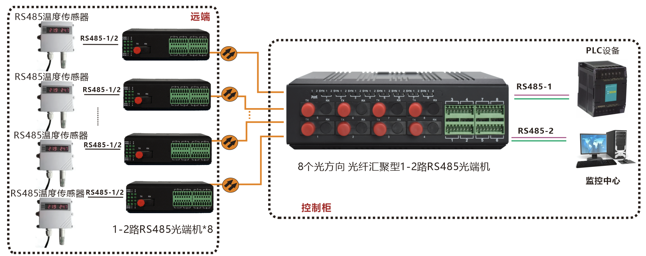| 產品功能描述 | 8路匯聚光口RS485光端機 |