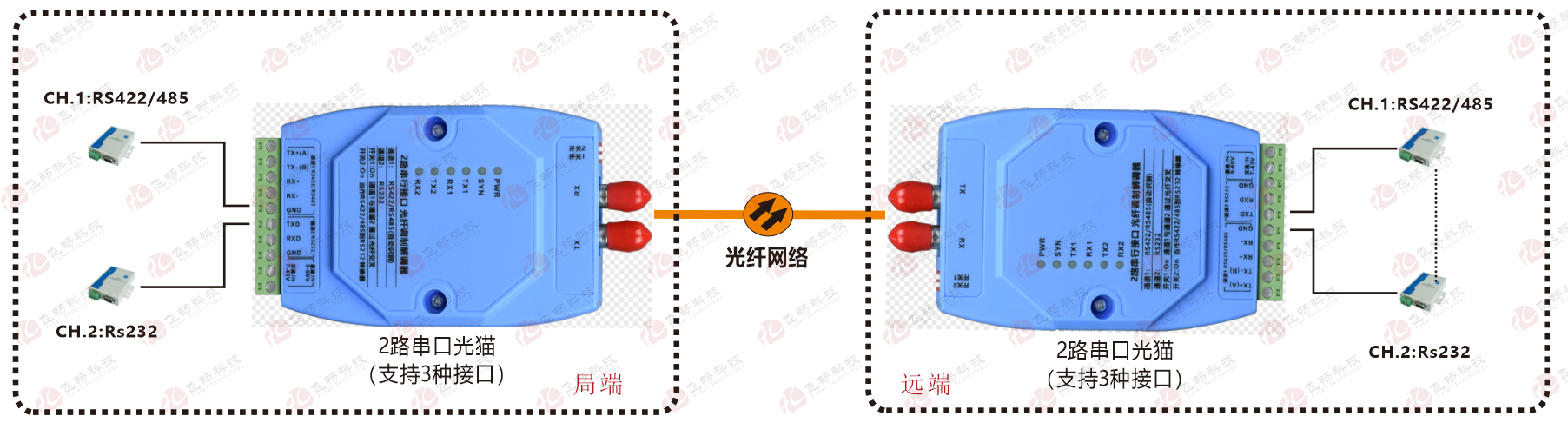 | 產品功能描述 | 在光纖上同時傳送1路RS422/485串口,與1路RS232串口 |
