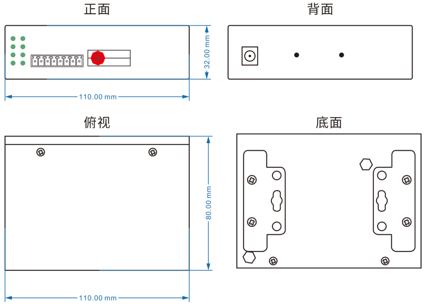 (110mm(長) x 82mm(寬) x 32mm(高) 安裝方式:、壁掛式安裝 |
