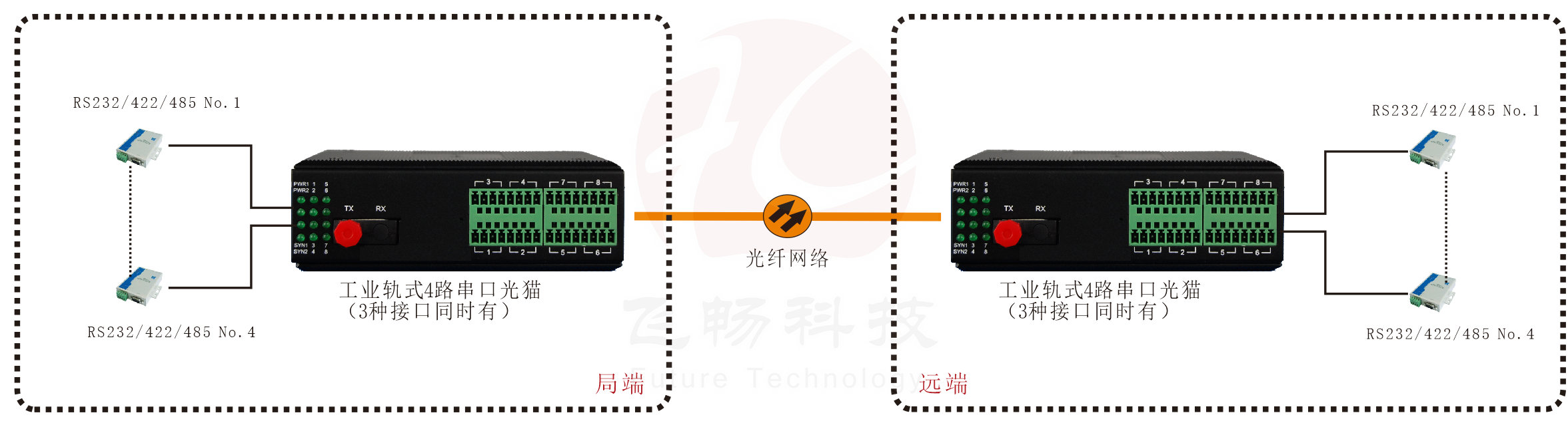 • 飛暢科技-工業軌式1-4路RS232/422/485(三種接口同時提供)光貓