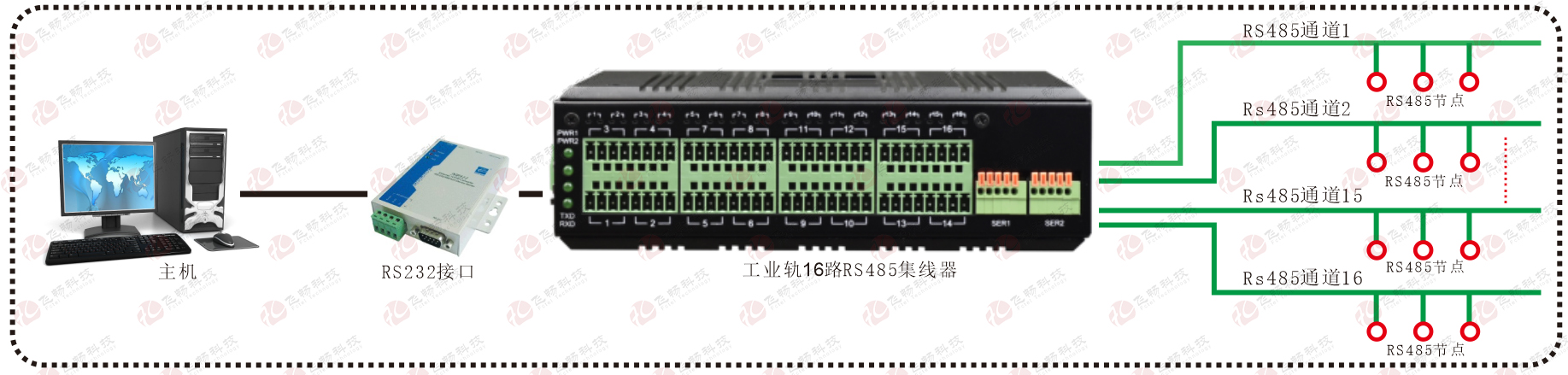 16通道RS485隔離集線器擁有8路完全電氣隔離RS485通道,每個通道都有獨立的RS485收發器,能實現16 通道傳輸延時非常小。符合RS485標準,支持透明的,協議獨立的RS485 消息傳輸,使其適用于多種應用,如Modbus 協議等。如果要將PC等監控設備連入網絡,16通道RS485隔離集線器上聯口可以配置RS232 端口,使您無需安裝額外的RS485轉RS232轉接設備。當雷擊或者設備故障產生時,出現問題的網段將被隔離,以確保其他網段的正常工作。這一性能大大提高了現有 RS485 網絡的可靠性,有效縮短了網絡的維護時間。