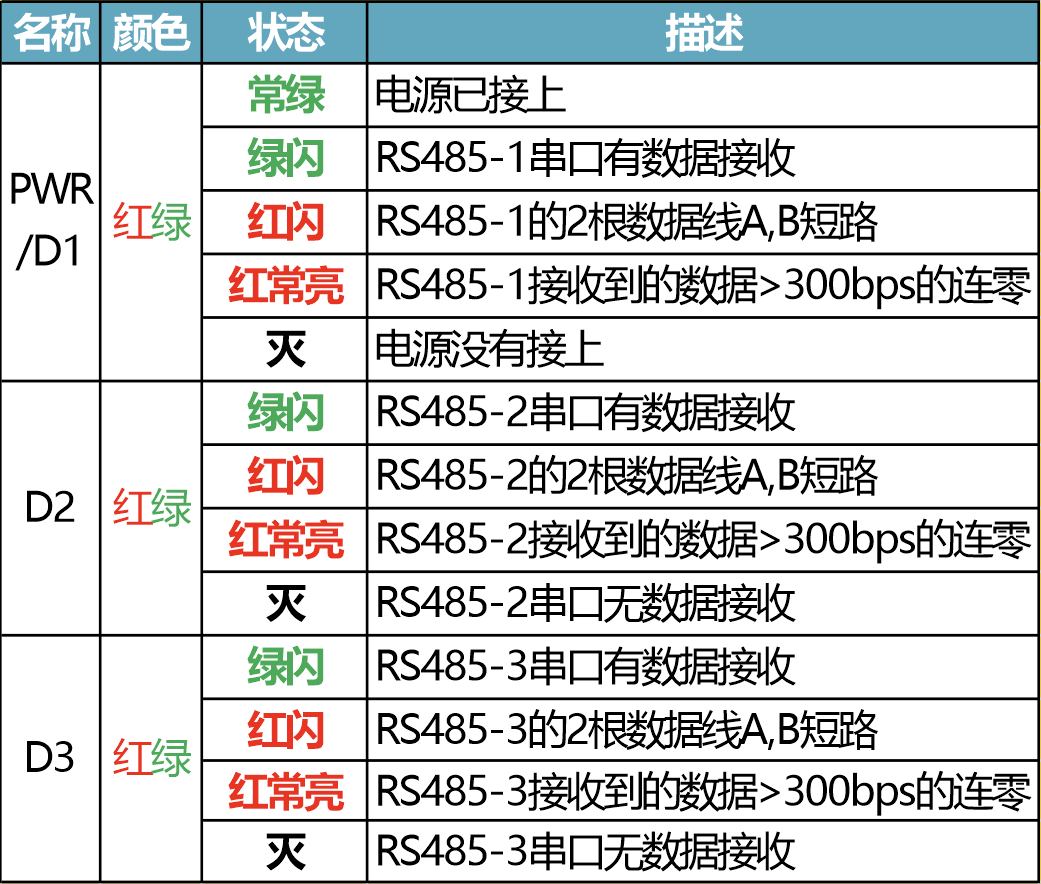 | 業務端口描述 | 2路隔離RS485通道,1路上聯隔離RS485接口 |