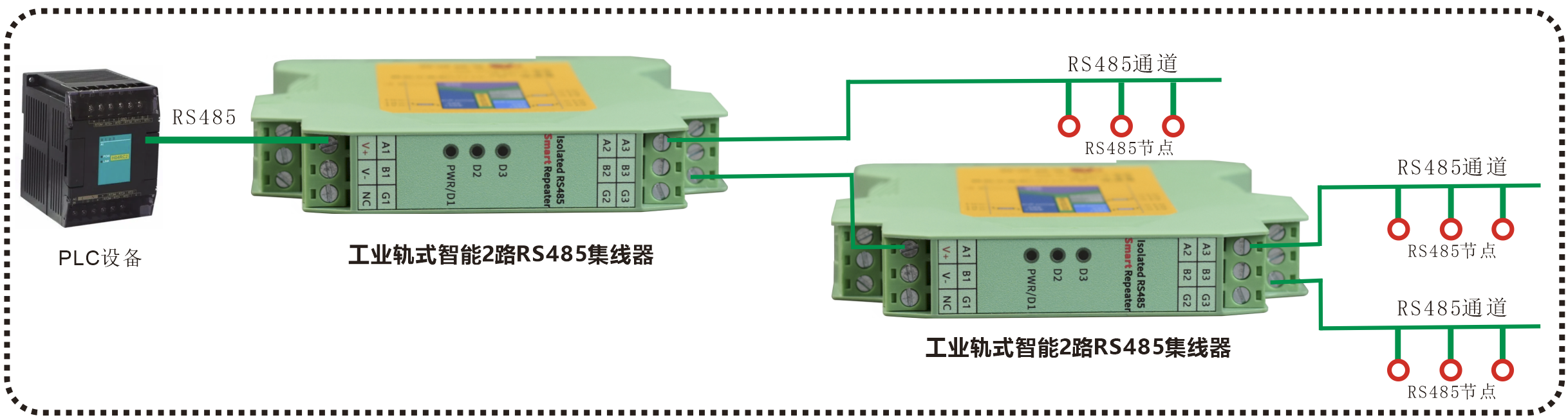 | 產品功能描述 | 智能工業軌式 2路RS485集線器 |