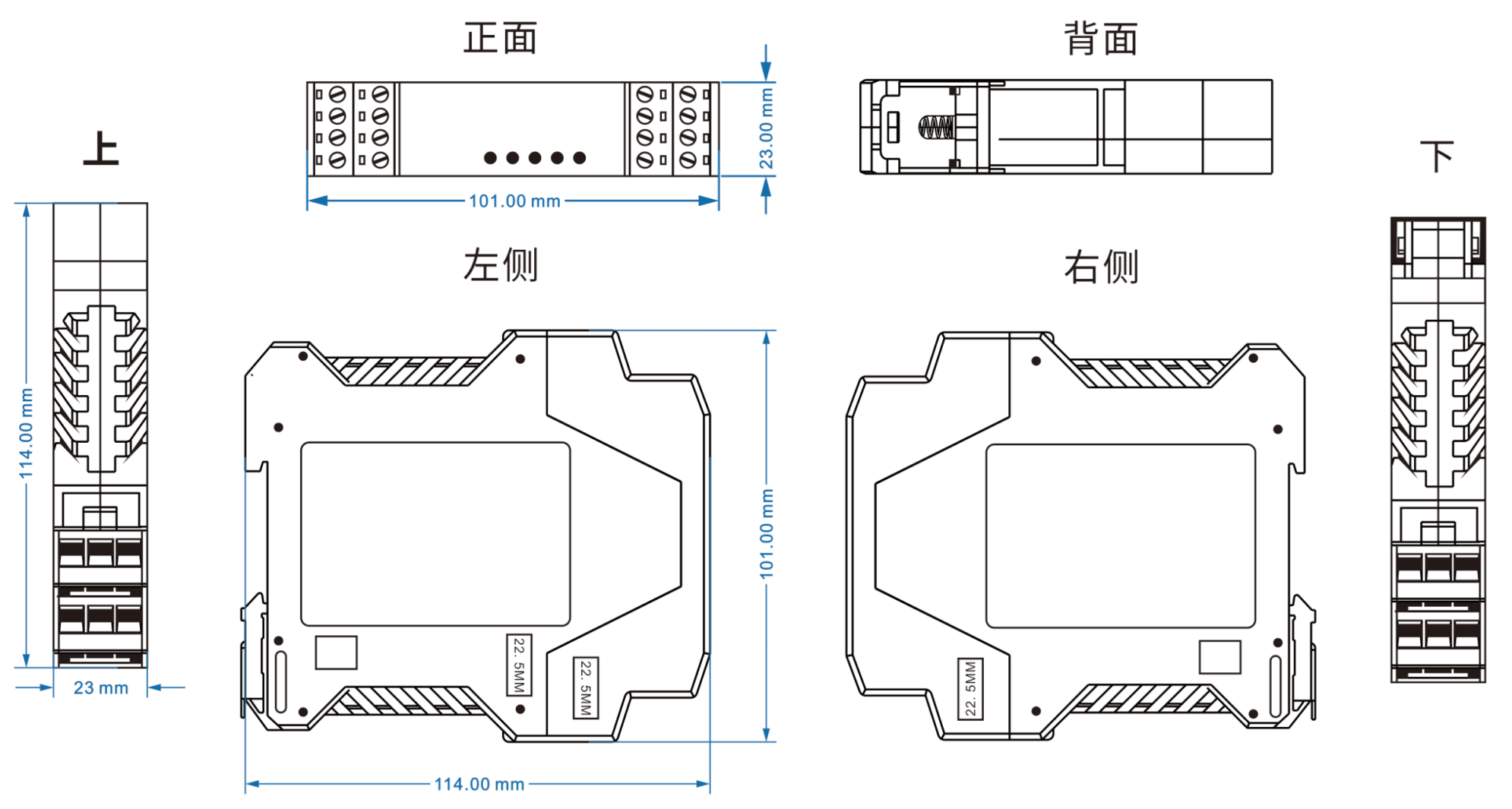 電源輸入DC9-70V ,功耗<1W 過載保護:支持;反接保護:支持; 接入端子:4芯5.08mm間距端子 |