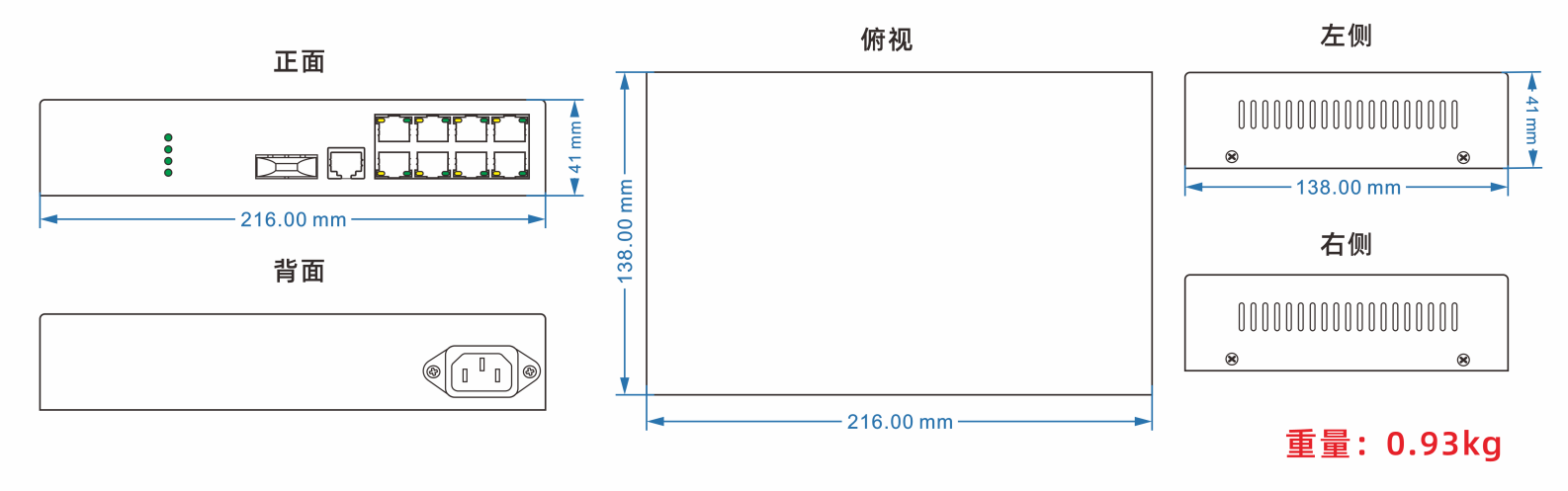 | 產品尺寸 | (長×寬×高) 216*138*41mm 桌面式 |