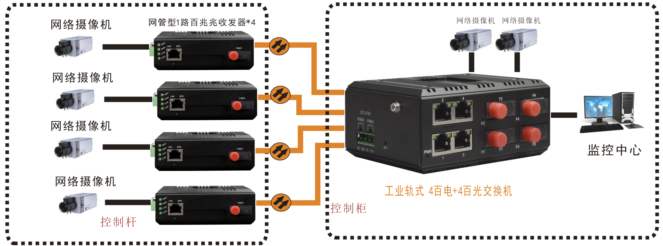 ◆ 提供4路百兆以太網電口,4個百兆以太光接口;