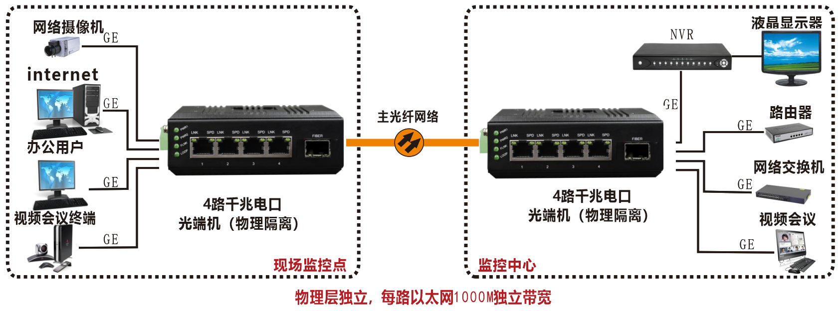 | 產品功能描述 | 1路10G SFP光口轉4*1000M物理隔離以太網電口,線速帶寬4*1000M |