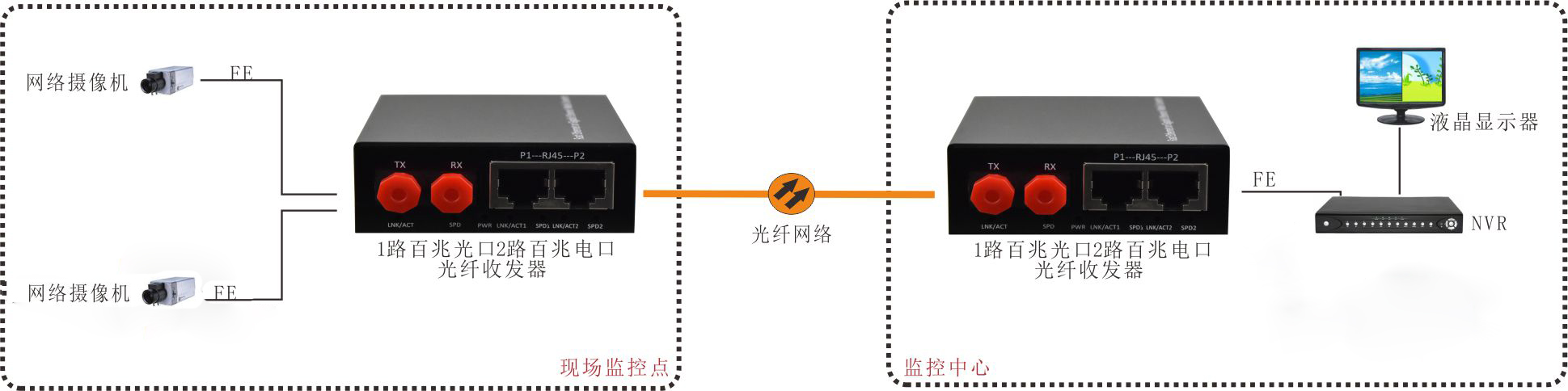 | 業務端口描述 | 1個百兆FC/SC/LC/ST光口,2個百兆以太網電口 |