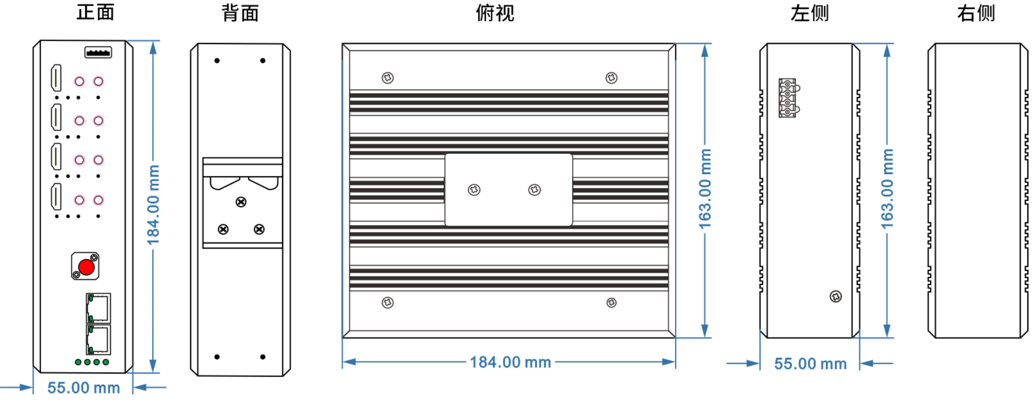 | 業務端口描述 | 1個光纖接口;4路HDMI信號,2路千兆以太網,1個USB接口 |