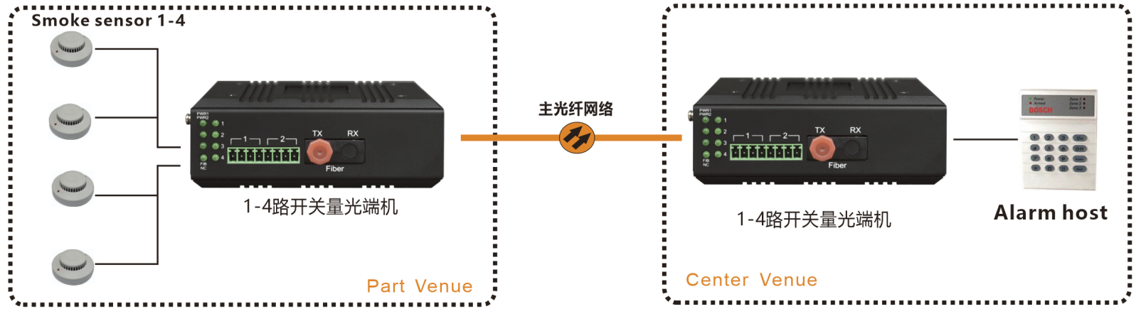 | 業(yè)務(wù)端口描述 | 4路開關(guān)量通道,1路光纖接口接口 |
