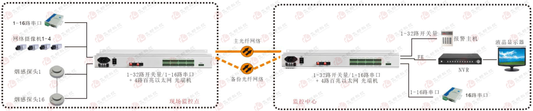 | 業務端口描述 | 2個1*9光纖口,32個開關量/16個串口+4路以太網光端機 |