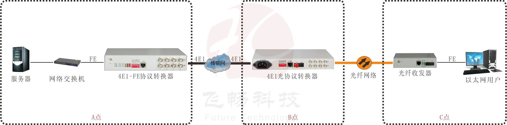 • 飛暢科技-4E1轉1路光以太協議轉換器